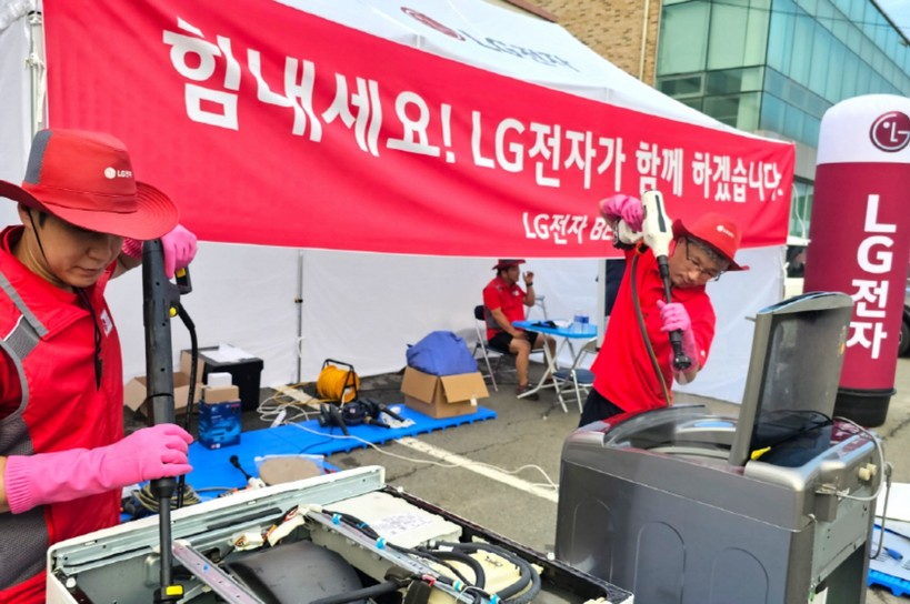 LG전자는 현장에서 제품과 제조사에 관계없이 침수된 전자제품의 상태를 확인하고 세척·수리·부품 교체 등을 한다.