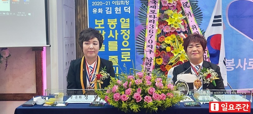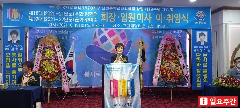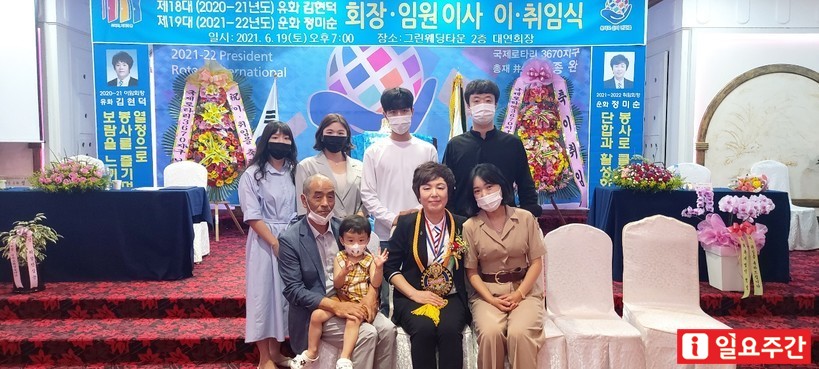 한편 2021-22회기 임원으로 ▲회장 정미순 ▲직전회장 김현덕 ▲차기회장 김현희 ▲멤보십위원장 장순희▲부회장 박원경 ▲총무 한수인 ▲재무 정정임▲클럽관리 위원장 오혜은 ▲공공이미지위원장 함기숙 ▲봉사프로젝트위원장 김유숙▲로타리재단위원장 송희수 ▲청소년위원장 문정애 ▲사찰위원장 김현덕 ▲감사 진삼순.김선아 .신입회원 조규아.임난아.오명숙.하정애 회원이 입회 환영을 받았다.