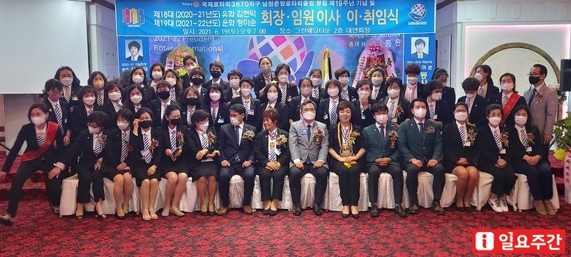 [일요주간 = 이태곤 기자] 국제로타리 3670지구 남원 춘향로타리클럽 지난 19일 그린웨딩타운 2층 대연회장 에서 제19주년 신.구회장 임원 이사 이.취임식이 개최됐다.