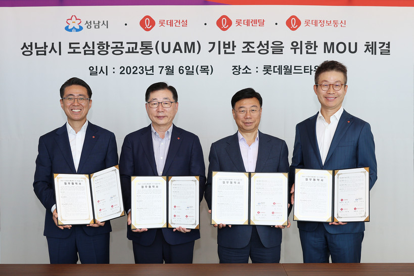 [일요주간=하수은 기자]롯데건설은 6일 잠실 롯데월드타워에서 성남시와 도심항공교통(UAM) 기반조성을 위한 업무협약을 체결했다.