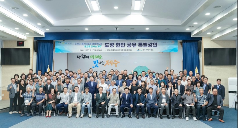 이날 오영훈 지사는 ‘골고루 잘 사는 제주’를 주제로 특강에 나섰으며, 제주도와 행정시 이장협의회 및 통장협의회 100여 명이 참석했다.