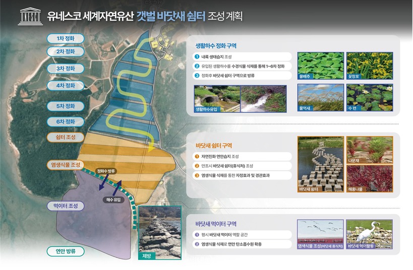 또 ‘신안·무안 국가해양생태공원 조성’을 위한 기본계획 수립을 추진해 2024년 해수부·기재부, 국회에 ‘신안 세계자연유산 갯벌 바닷새 쉼터 조성사업’ 국고 건의를 개진하고 있다.