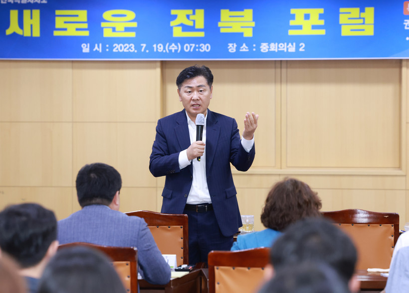 전북도는 19일 오전 7시 30분 도청 중회의실에서 김관영 도지사가 부지사, 실·국장 등 간부 공무원과 관련 출연기관장 및 직원 70여 명과 함께 ‘7월 새로운 전북 포럼’을 열고, ‘데이터 기반 바이오 소재 산업화’를 주제로 공부와 열띤 토론을 펼치는 시간을 가졌다고 밝혔다.