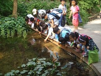우리 학교는 녹색성장 환경교육을 바탕으로 학교에서 사용하는 책상, 의자 등의 물건을 친환경적인 제품으로 바꾸었습니다. 6학년 학생들에게는 광교산 체험프로그램을 통해 나무 소리도 듣고 관찰 탐험하는 프로그램을 만들어 시행하고 있습니다. 또 아이들이 먹는 과일과 채소도 유기농 제품을 사용해 보다 건강하게 자랄 수 있도록 배려하고 있습니다.