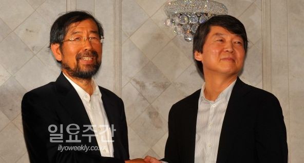 | ▲ 손 잡은 박원순(좌)과 안철수(우) | ||