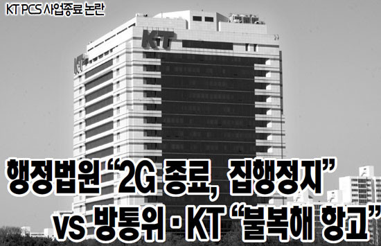[일요주간=김민호 기자] 방송통신위원회(방통위)가 서울행정법원이 내린 (주)KT의 2세대(2G) 이동전화 이른바 ‘PCS’ 사업종료 집행정지 결정에 불복해 8일 항고했다. 방통위는 이날 법무법인 율촌을 통해 서울행정법원에 항고장을 제출했다.
