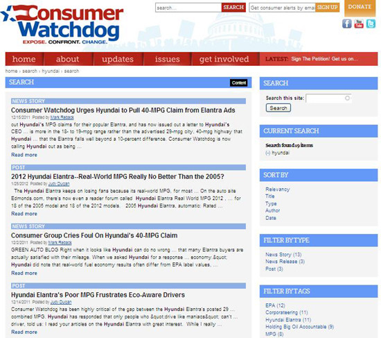 미국의 비영리 소비자 권익 단체인 컨슈머와치독(Consumer Watchdog)은 지난달 25일 2012년식 아반떼 연비의 과대광고에 속았다며 강력한 불만을 제기했다. 이들의 불만 섞인 주장은 2011-2012년식 아반떼가 출시된 이후부터 이어져왔다.