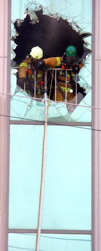 그러나 창문이 없는 구조로 되어있고, 건물 내 연기와 열기가 심해 진화에 어려움을 겪고 있다.