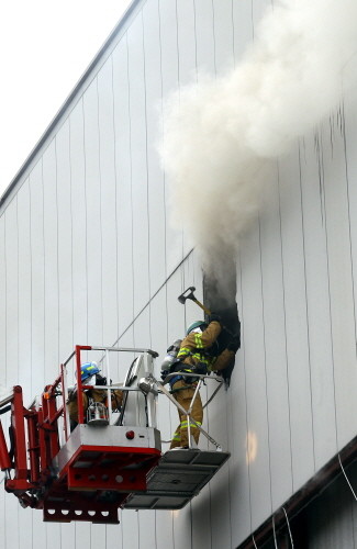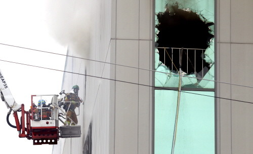 소방당국은 소방비상 최고단계인 ‘광역 3호’를 발령하고 외벽을 뚫어 건물내로 진입해 물을 뿌리고 있다.