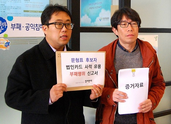 | ▲ 참여연대 장정욱 시민감시2팀장과 장동엽 선임간사가 문형표 보건복지부장관 후보자의 법인카드 사적 유용 의혹에 대해 21일 오전 국민권익위원회에서 부패행위 신고 취지를 설명하고 있다. (사진제공=참여연대) | ||