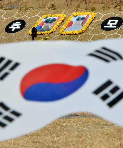 국립대전현충원은 이달 30일까지 추모기간으로 정하고 앞서 지난 20일 관계자들이 故서정우 하사, 문광욱 일병 대형사진에 노란색 국화로 장식한 추모 언덕을 만들었다.