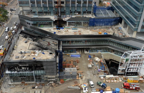 소방당국에 따르면 소방차 15대를 투입해 오후 2시 8분쯤 화재를 진화했고, 이 과정에서 공사현장 관계자 270여명이 대피하는 소동을 벌였다.