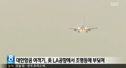 18일 대한항공에 따르면 이 여객기는 LA 공항에 착륙한 직후 입국 게이트로 이동하는 과정에서 공항측 안내 차량의 실수로 날개 끝 부분이 조명시설과 부딪혀 손상됐다.
