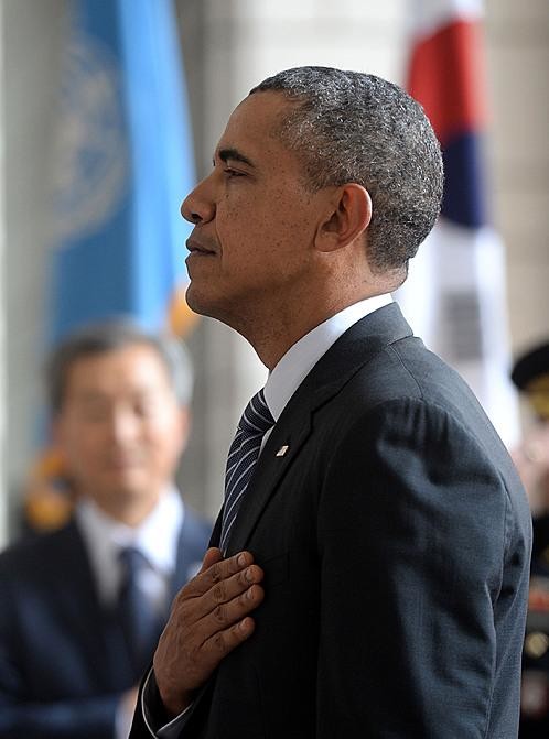 한편 오바마 미국 대통령이 이날 오후 첫 일정으로 용산전쟁기념관을 방문하고 이어 경복궁에 도착해 조선 국왕의 즉위식 등이 거행된 경복궁 근정전의 용상 등을 살펴봤다.