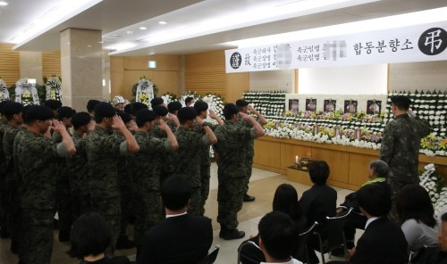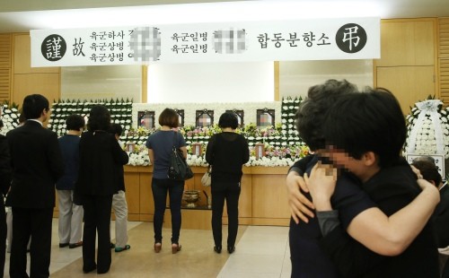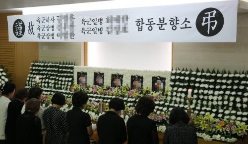 24일 경기도 성남시 분당구 율동 국군수도통합병원 장례식장에 마련된 합동분향소에는 깊은 슬픔에 잠겨 있는 유가족들을 위로하기 찾은 친지, 지인 등의 모습이 많이 눈에 띄었으며 여야 정치인들을 비롯해 군 장병들의 조문도 끊이지 않고 있다.