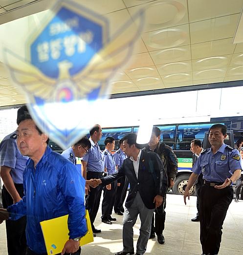| ▲ '세월호 침몰사고 국정조사 특별위원회' 소속 야당 의원들이 25일 사고당시 신고를 받고 출동한 전남 목포해양경찰서에서 조사를 벌이기 위해 들어서고있다. ⓒNewsis | ||