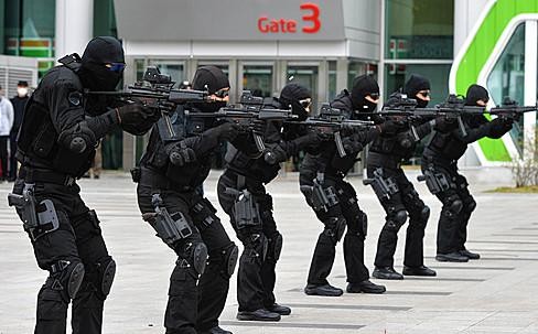 이날 훈련은 대구지방경찰청 50사단, 국가정보원대구지부, 대구소방안전본부 등 지역 8개 유관기관 대테러 요원 150여명과 헬기, 특수작전차량이 동원 돼 폭발물 탐지와 처리, 요인경호, 화재진압, 구호, 화생방테러 대응 등의 작전이 일사불란하게 진행됐다.