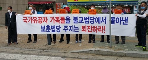 | ▲지난 5일 서울중앙보훈병원 앞에서 보훈법당 자원봉사자들이 주지 스님의 퇴진을 요구하는 시위를 벌였다. | ||