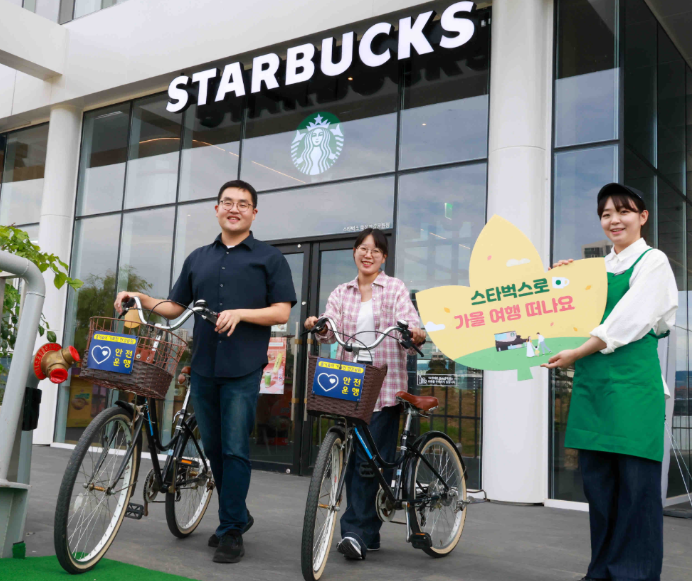 [일요주간 = 엄지영 기자] 스타벅스 코리아(대표이사 손정현)가 한국관광공사와 손잡고 가을철 자전거 여행 문화를 널리 알린다. 양측은 저탄소 여행 주간에 맞춰 이달 26일부터 오는 10월 25일까지 ‘투어스(To Earth, To Us): 로컬 라이딩 챌린지’를 전개하며, 고객들이 전국 12개 자전거 코스와 지역 매장에서 색다른 여행과 커피 문화를 동시에 즐길 수 있도록 했다.