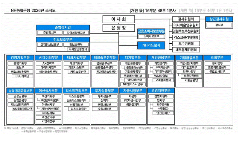 - NH농협은행, 2026년 1월 조직개편 단행…AI 전환·생산적 금융·종합금융 체계 강화