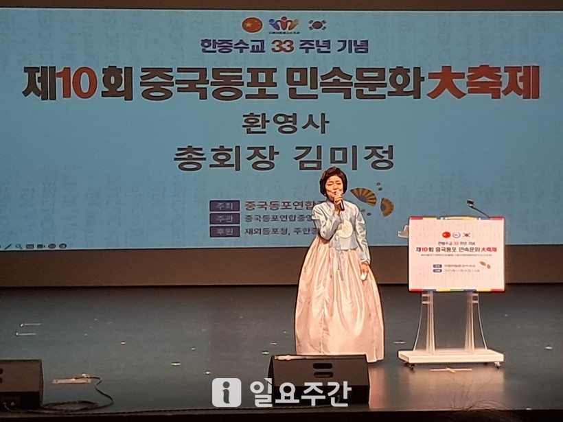 이날 개회 선언에 나선 김미정 중국동포연합중앙회 총재는 “한·중 수교 33주년의 뜻깊은 날, 우리 모두가 웃고 노래하며 한중 우호의 아름다운 노래를 그려보는 시간”이라며 “동포 사회의 정체성을 지키고 예술로 교류를 이어가겠다”고 말했다.