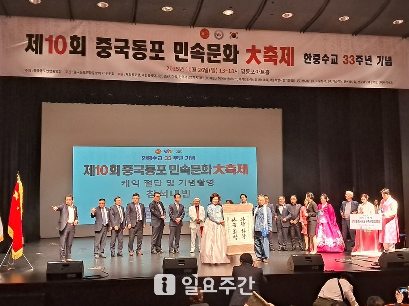 [일요주간=임태경 기자] 한·중 수교 33주년을 기념하는 ‘제10회 중국동포 민속문화대축제’가 지난 26일 서울 영등포아트홀에서 열렸다. 이날 행사는 중국동포연합중앙회(총재 김미정)가 주최하고 재외동포청과 주한중국대사관이 후원한 가운데 국내외 귀빈과 동포 예술단체, 지역 인사들이 대거 참석해 성대한 축제의 장을 만들었다.