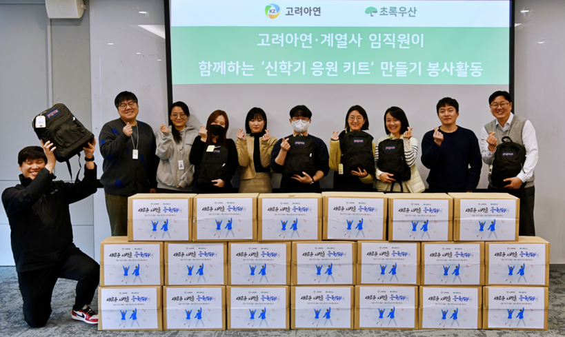 지난 20일 서울 종로구 고려아연 본사 다목적실에서 실시한 ‘고려아연·계열사 임직원이 함께하는 신학기 응원키트 만들기 봉사활동’에는 고려아연과 계열사 서린정보기술·케이지트레이딩·한국전구체(KPC) 임직원 10여명이 참여한 가운데 아이들에게 전달할 엽서를 작성하고 각종 선물이 담긴 신학기 키트를 제작했다.