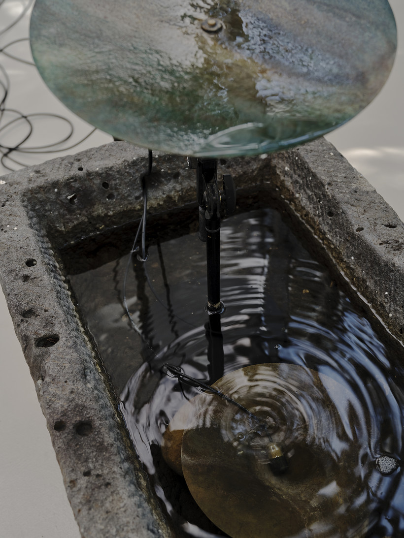 타렉 아투이는 1980년 레바논 베이루트에서 태어나 현재 프랑스 파리를 기반으로 활동 중인 작가이자 작곡가로, 음악사와 악기, 사운드 제작에 대한 연구를 바탕으로 소리에 대한 인식과 경험을 확장하는 다감각적 퍼포먼스와 설치 작업을 선보여 왔다. 유리, 물, 도자기 등 다양한 재료로 직접 제작한 악기를 조각 작품이자 소리의 매개체로 활용하는 것이 그의 작업 특징이다.