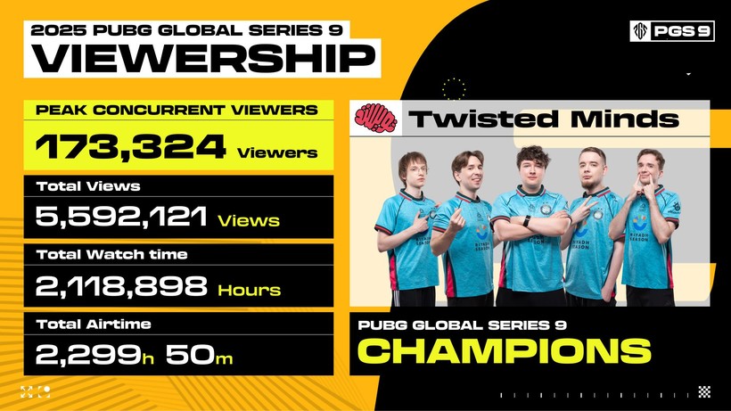 이번 시즌 9에서는 유럽·중동·아프리카(EMEA) 지역의 트위스티드 마인즈(Twisted Minds)가 안정적인 운영과 후반 집중력을 앞세워 우승을 차지했다. 이어 시즌 10에서는 같은 지역의 버투스 프로(Virtus.pro)가 강력한 교전 능력을 발휘하며 정상에 올랐다. 이로써 올해 열린 네 차례 시리즈(PGS 7~10)의 우승팀은 17게이밍(중국), BB팀(EMEA), 트위스티드 마인즈(EMEA), 버투스 프로(EMEA)로 확정되며, EMEA 지역의 압도적인 강세가 다시 한 번 확인됐다.
