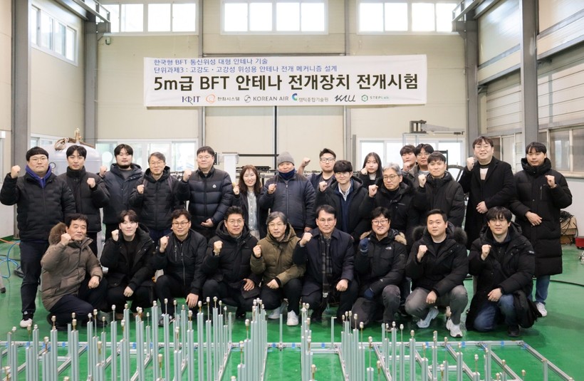 대한항공은 지난 1월 전북 전주 캠틱종합기술원에서 5미터급 위성 안테나 전개 시스템 시험을 성공적으로 수행했다고 밝혔다. 이번 시험은 국기연이 추진하는 국방 핵심기술 과제의 일환으로 진행됐으며, 캠틱종합기술원과 스텝랩, 한국항공대학교 등 산학연 관계자들이 참여했다.