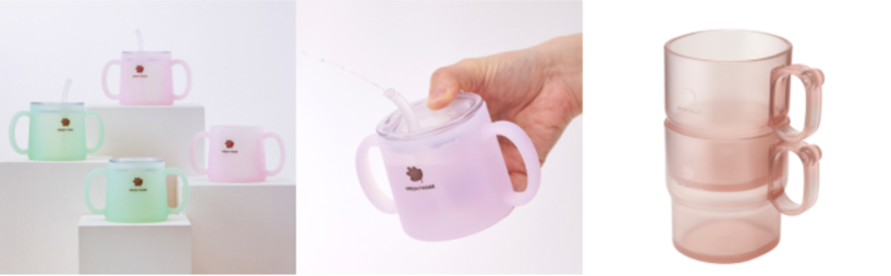 에코젠 트레이닝컵은 한 손으로 잘 붙잡고 마실 수 있도록 엄지 손가락 위치와 슬립방지 범프가 입체적으로 설계된 것이 특징이다. 차별성이 뛰어난 만큼 해당 설계는 디자인 특허도 출원 중이다. 에코젠은 식물추출원료를 기반으로 한 바이오플라스틱 소재다. 양손컵과 뚜껑을 호환하여 사용할 수 있으며 쌓아서 보관할 수 있어 공간활용성도 뛰어나다. 육아용품인 만큼 안전성은 기본. 사용된 소재 환경호르몬을 방출하지 않으며 식품공전과 자가품질 검사 테스트도 완료했다.