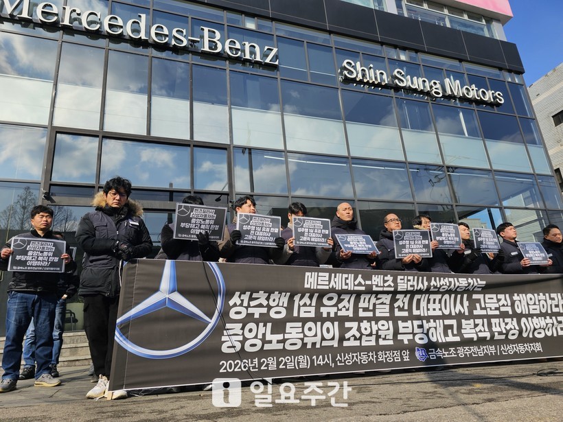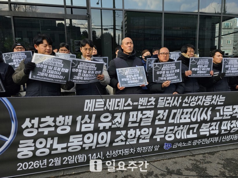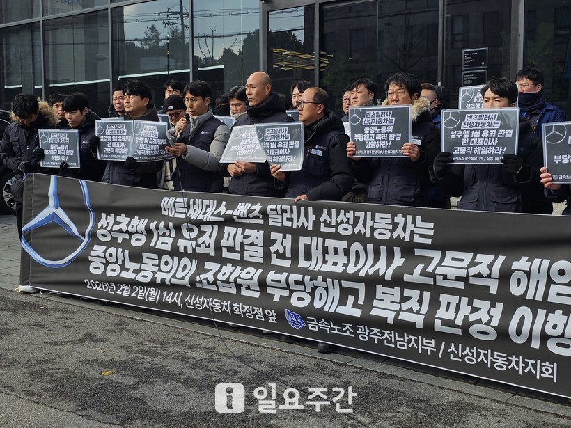 [일요주간 = 최종문 기자] 성추행 범죄로 유죄 판결을 받은 전직 대표이사가 여전히 고문직을 유지하고 있는 메르세데스-벤츠 코리아의 딜러사, 신성자동차를 규탄하는 목소리가 터져 나왔다. 노동계는 사 측의 공식 사과와 함께 중앙노동위원회의 부당해고 복직 판정을 즉각 이행할 것을 촉구하고 나섰다.