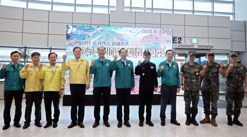 | ▲ 2023 을지연습 대태러대응훈련 기념촬영을 하고 있다.(사진=인천항만공사) |