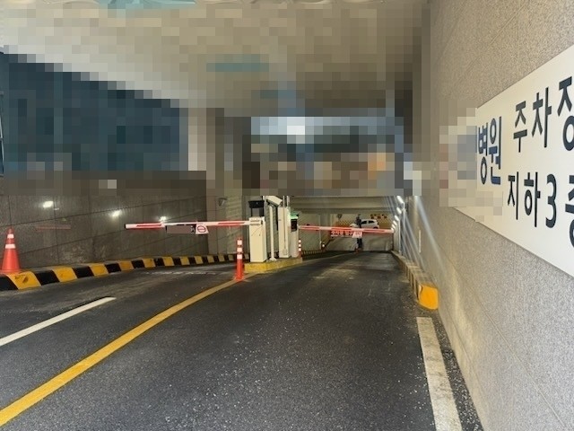 | ▲ 임대료 63억여 원 미납 수원 OO병원이 건물 내에 주차차단시설물 불법 설치. (이미지=㈜아진코퍼레이션 제공) |