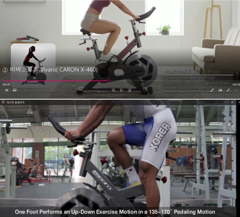 | ▲ 비바스포츠 자전거 운동기구 'Vivaro 902 BV'의 도면(좌)과 JK6 다목적 자전거 운동기구의 도면(우). (사진=JK6 제공) |