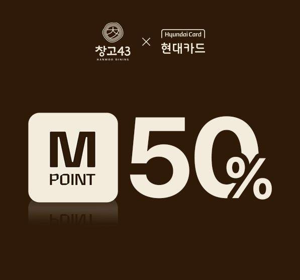 [일요주간 = 엄지영 기자] 다이닝브랜즈그룹이 운영하는 프리미엄 한우 다이닝 브랜드 ‘창고43’이 현대카드와 손잡고 결제 금액의 최대 50%를 M포인트로 사용할 수 있는 파격적인 할인 프로모션을 진행한다고 10일 밝혔다.