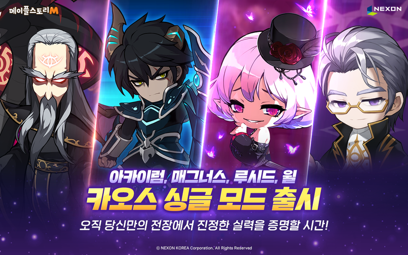 [일요주간 = 하수은 기자] ㈜넥슨(공동 대표 강대현·김정욱)이 모바일 MMORPG ‘메이플스토리M’에 군단장 보스 4종의 카오스 난이도 싱글 모드를 추가하고 신규 콘텐츠 ‘차원의 도서관’과 서비스 9주년 기념 이벤트를 선보였다.